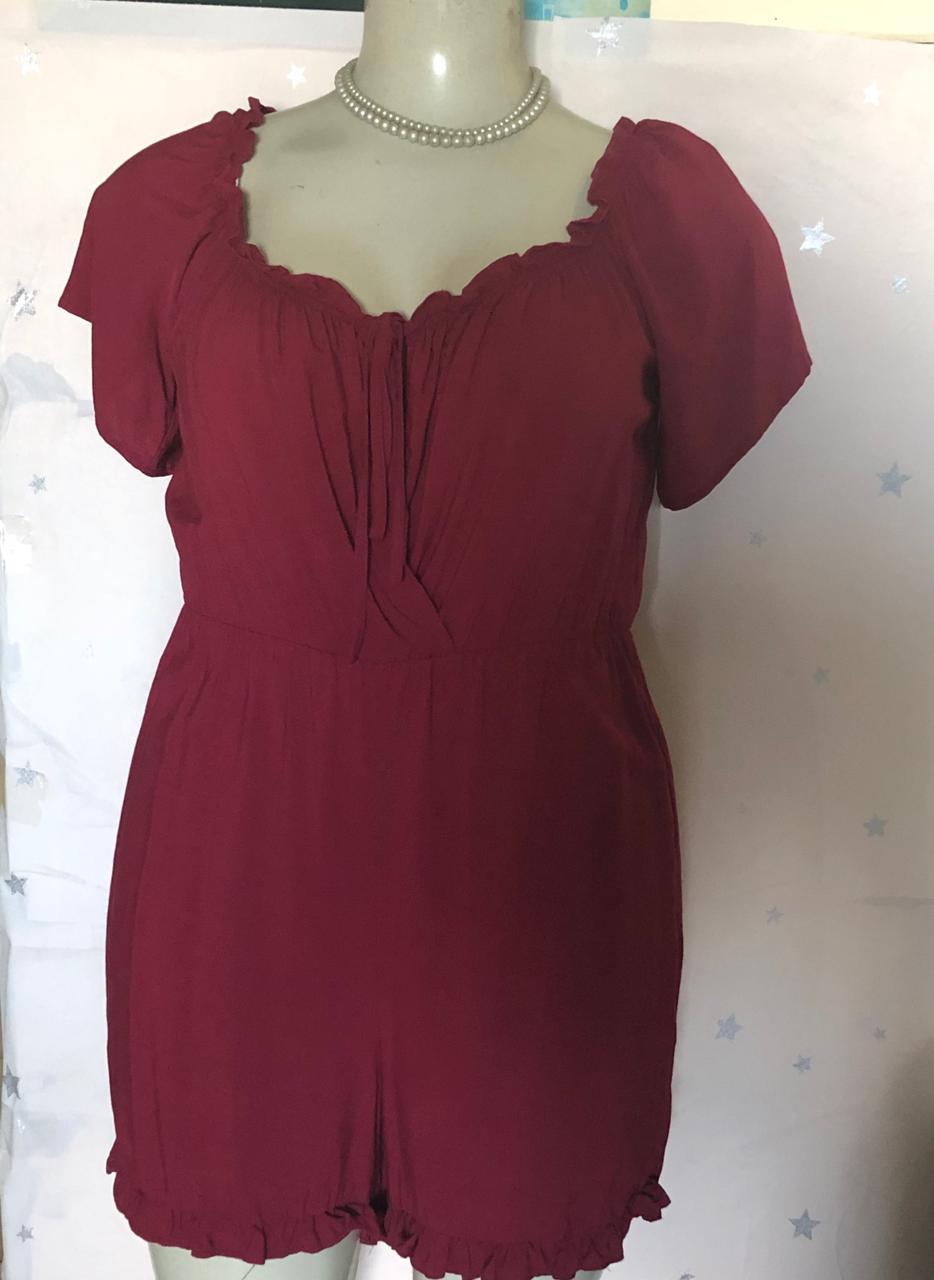 Macaquito vinho com elástico na cintura de manguinha,,elastico na perna