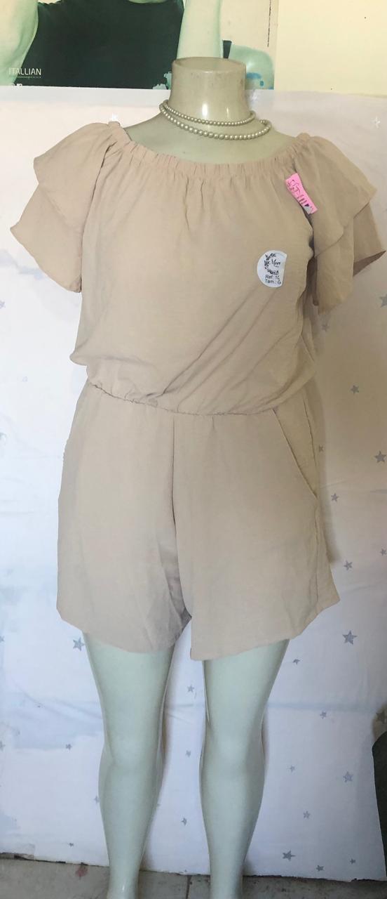 Macaquito marrom com elástico na cintura de manguinha