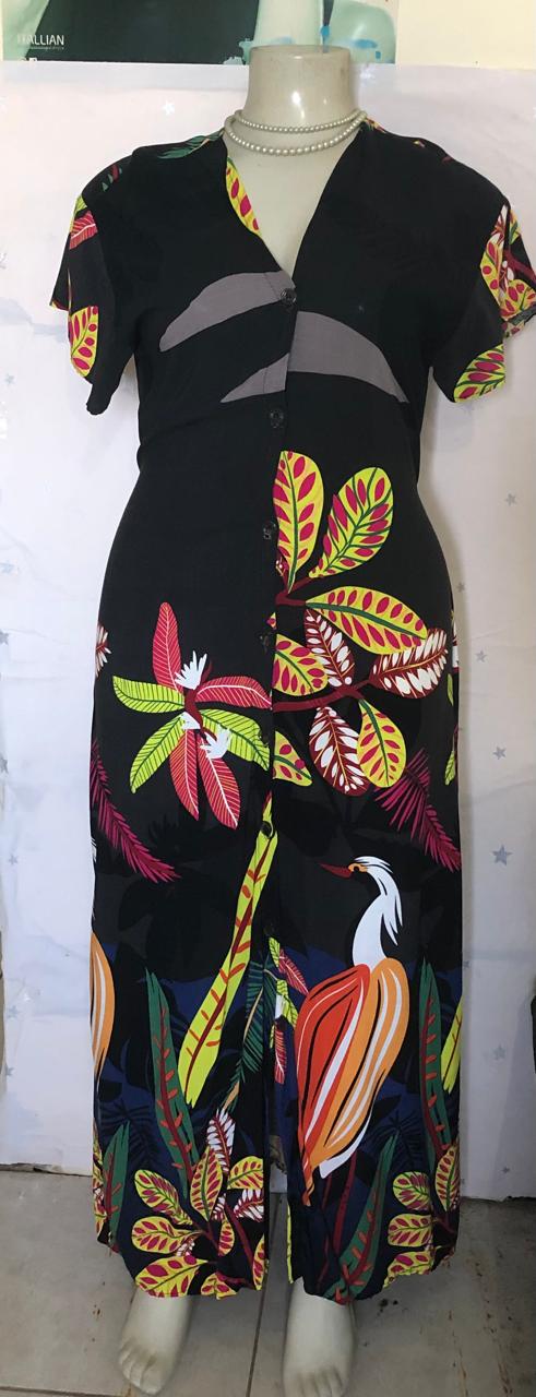 vestido comprido com elástico na costa de manguinha